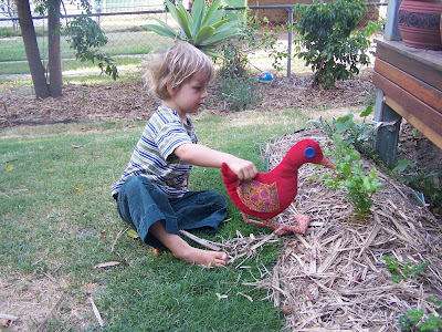 Well then, first there was the preparation of the Jack'O'Lantern - isn't he a classy guy? When we put him on the front gate, trick-or-treaters seemed to materialise from all over the place. Jimmy had a ball squidging all the slimy seeds we dug out!